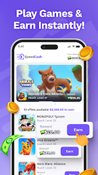 SpeedCash เป็นแอปพลิเคชัน Android ที่ออกแบบมาเพื่อช่วยให้ผู้ใช้ค้นพบเกมที่น่าตื่นเต้นได้อย่างง่ายดาย แอปไลฟ์สไตล์ฟรีนี้ช่วยให้ผู้ใช้สามารถเรียกดูเกมที่หลากหลาย โดยการแตะที่ชื่อใด ๆ ที่ดึงดูดความสนใจเพื่อดำดิ่งเข้าสู่การกระทำ โดยการซิงค์กับเกมที่ติดตั้งไว้แล้วในอุปกรณ์ SpeedCash รับประกันประสบการณ์การเล่นเกมที่ราบรื่นซึ่งปรับให้เข้ากับความชอบของผู้ใช้